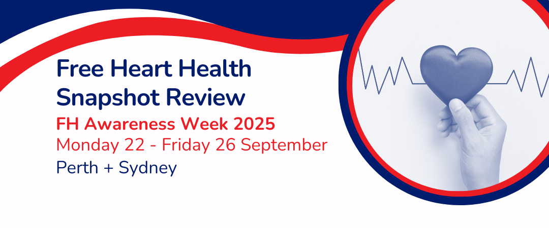 Read More: Free Heart Health Snapshot ReviewVisit our pop-up stalls in Perth and Sydney this FH Awareness Week for a free heart health snapshot, quick cholesterol test and have your cholesterol questions, including family history of high cholesterol answered. Perth Tuesday 23 – 9am – 12pmFiona Stanley Hospital Wednesday 24 – 9am-12pm St John of God Midland Thursday 25 – 8am –…
